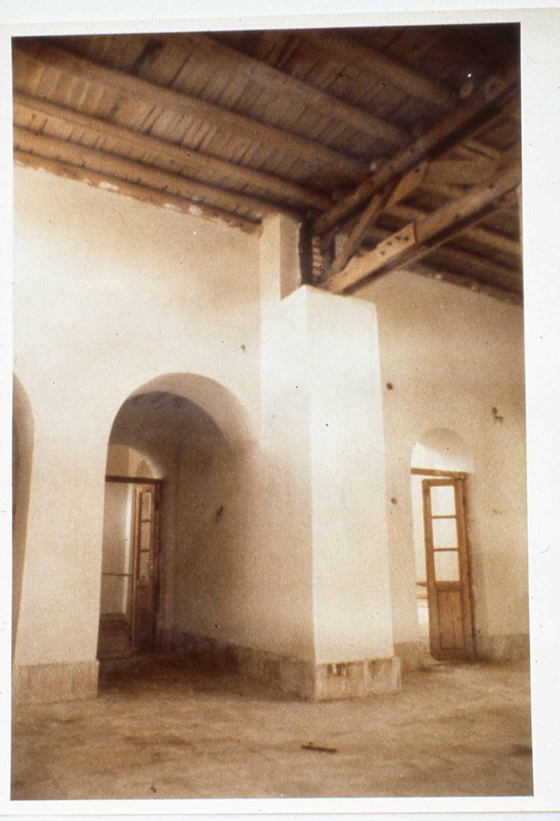Building interior with wooden roofing