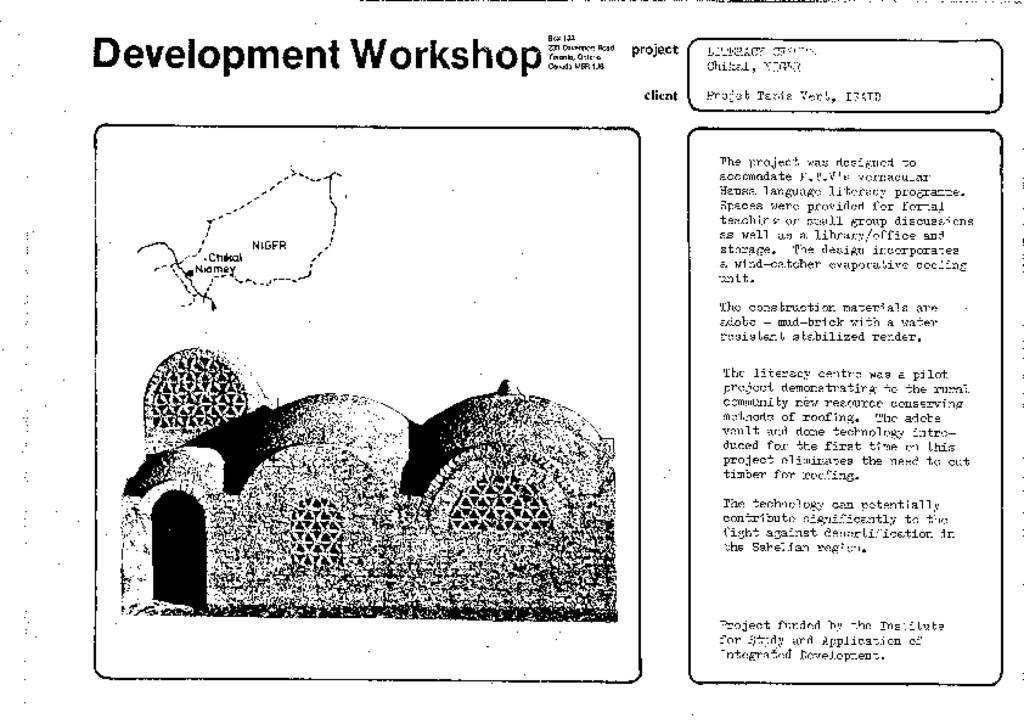 This item is provided under Creative Commons Attribution NonCommercial: https://creativecommons.org/licenses/by-nc/4.0. Please credit Development Workshop Digital Archive. Permission to publish; copy; or otherwise use this material for commercial purposes must be obtained from Development Workshop.