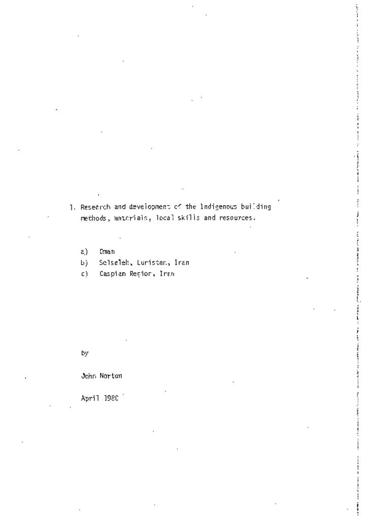 Research and Development of the Indigenous building methods; materials; local skills and resources