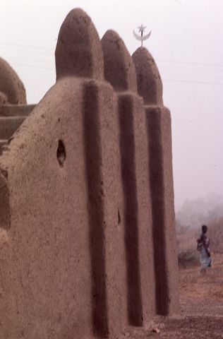 Wall of mosque with woman and child