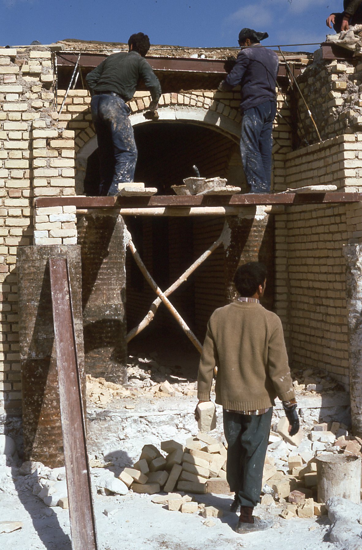 Working on roof of new school