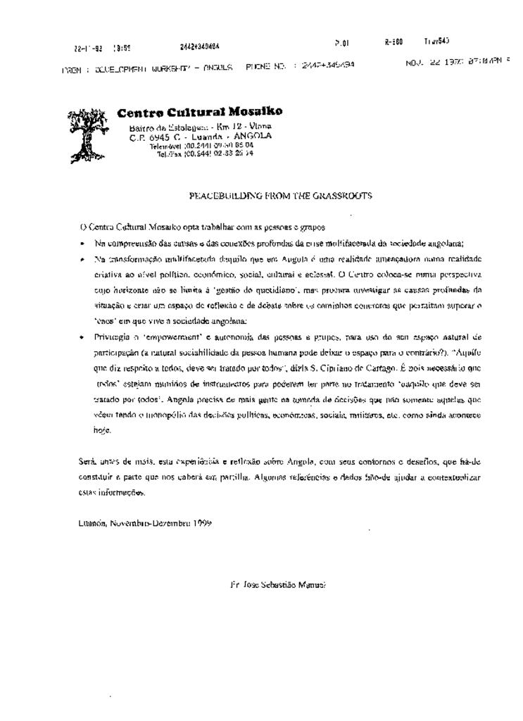 Angola Peacebuilding from the Grassroots November 1999