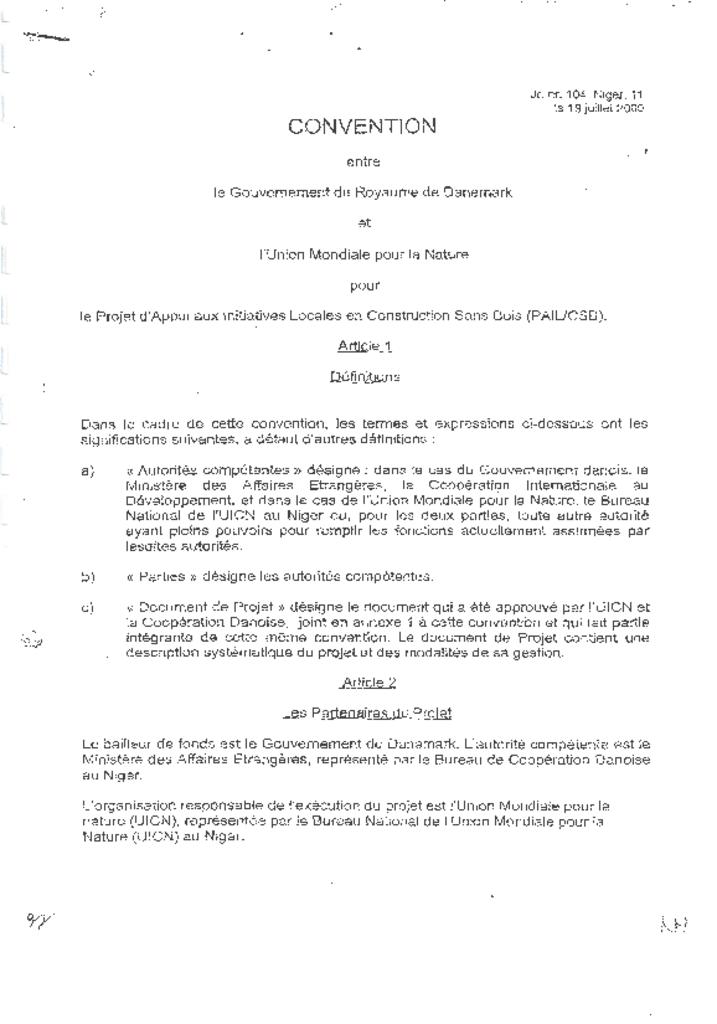 Agreements between International Union for Conservation of Nature (IUCN) and Danish International Aid (DANIDA) for the woodless construction programme.
