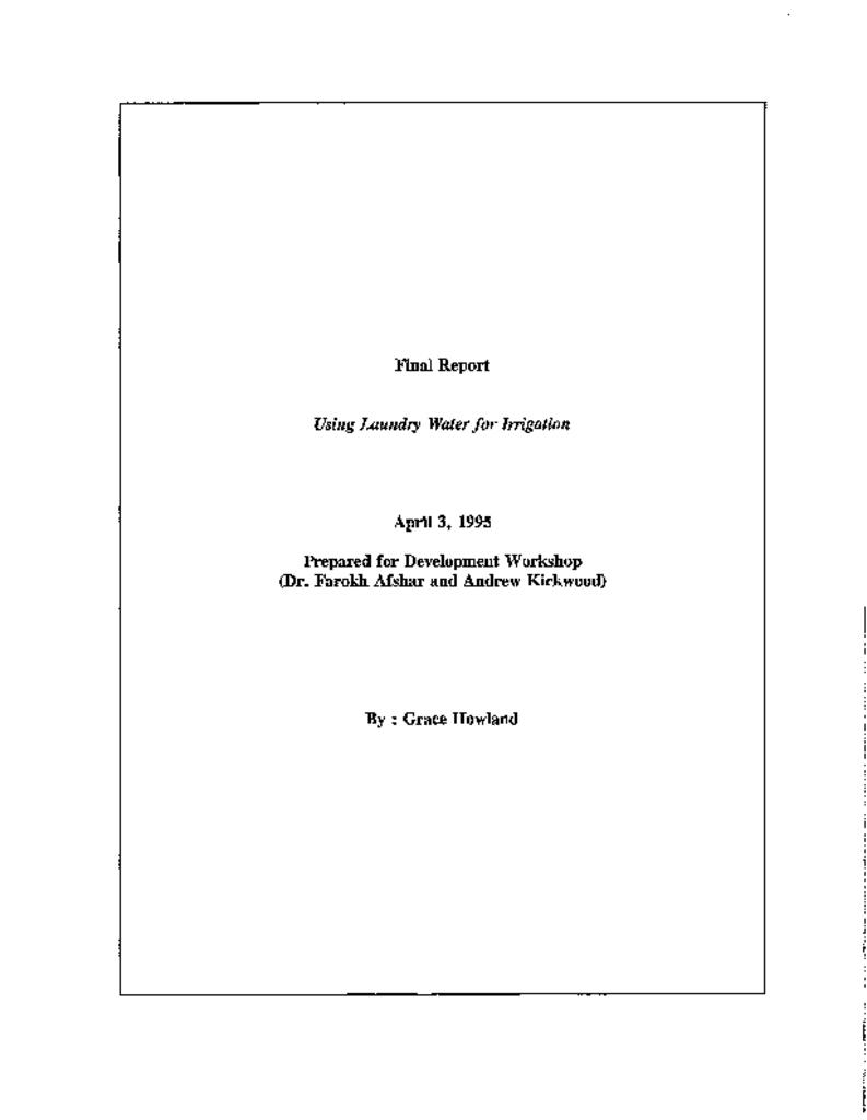 Examination of the feasibility of implementing a water reuse project as a community laundry facility; to be run by a local womenŠ—Ès organization.