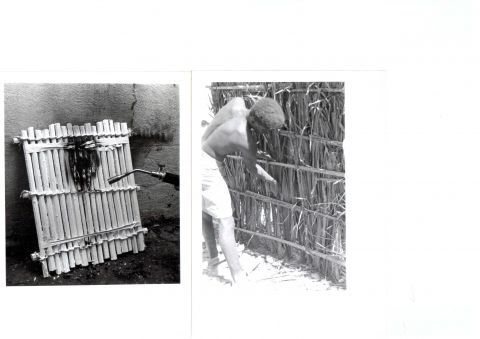 Fire test on barasti (date palm frond stem) and wall making