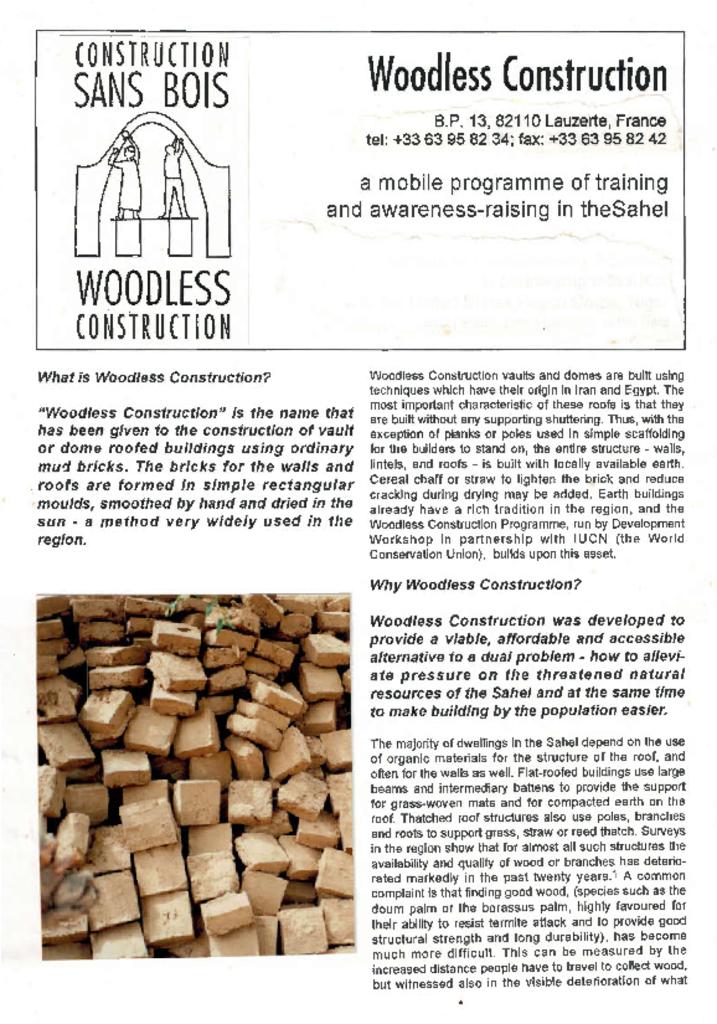 Short and long articles on woodless construction.