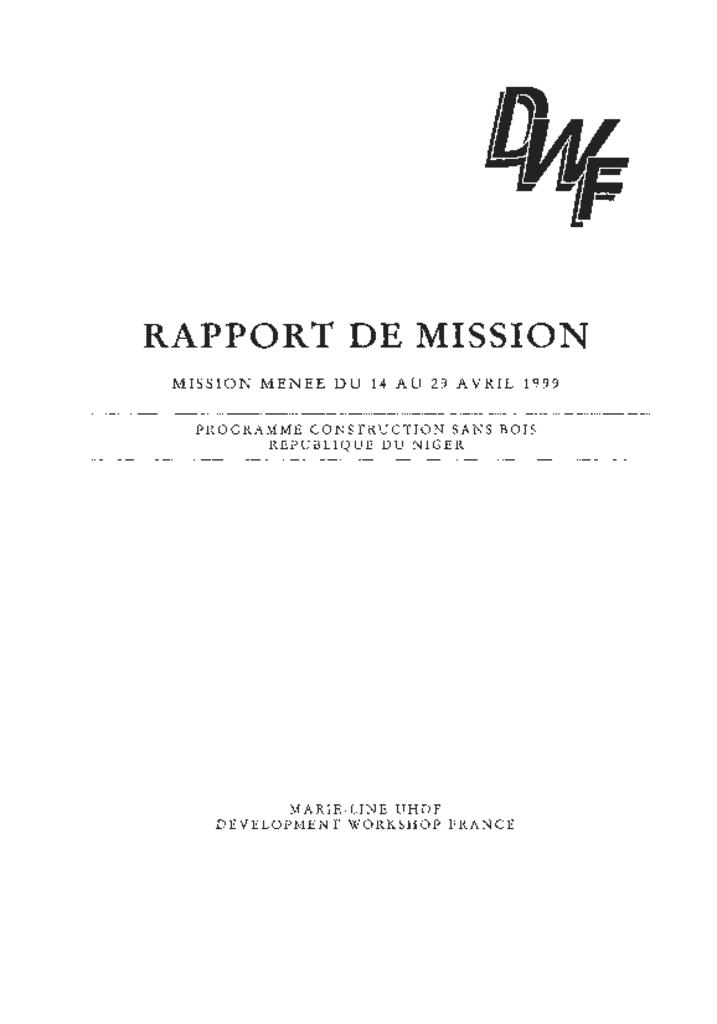 Rapport de mission détaillé Programme Construction San Bois Niger